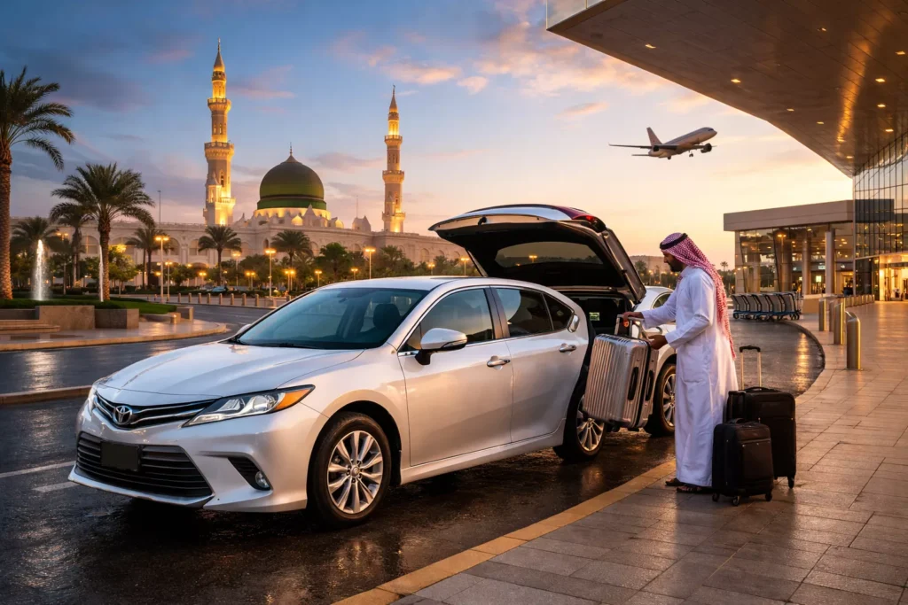 حجز خدمة سيارات أجرة احترافية في المدينة المنورة سهل ومريح مع فريقنا. نوفر خدمة نقل موثوقة للحجاج والزوار والعائلات المسافرة داخل المدينة المنورة أو إلى مدن أخرى مثل مكة المكرمة. سائقونا ذوو خبرة واسعة ويعرفون الطرق المحيطة بالمسجد النبوي والفنادق والمطار. ما عليك سوى التواصل معنا عبر واتساب، وإخبارنا بموقعك ووجهتك، وسنرتب رحلتك بسرعة. سياراتنا المريحة وخدمتنا السريعة تضمن لك رحلة سلسة وخالية من التوتر